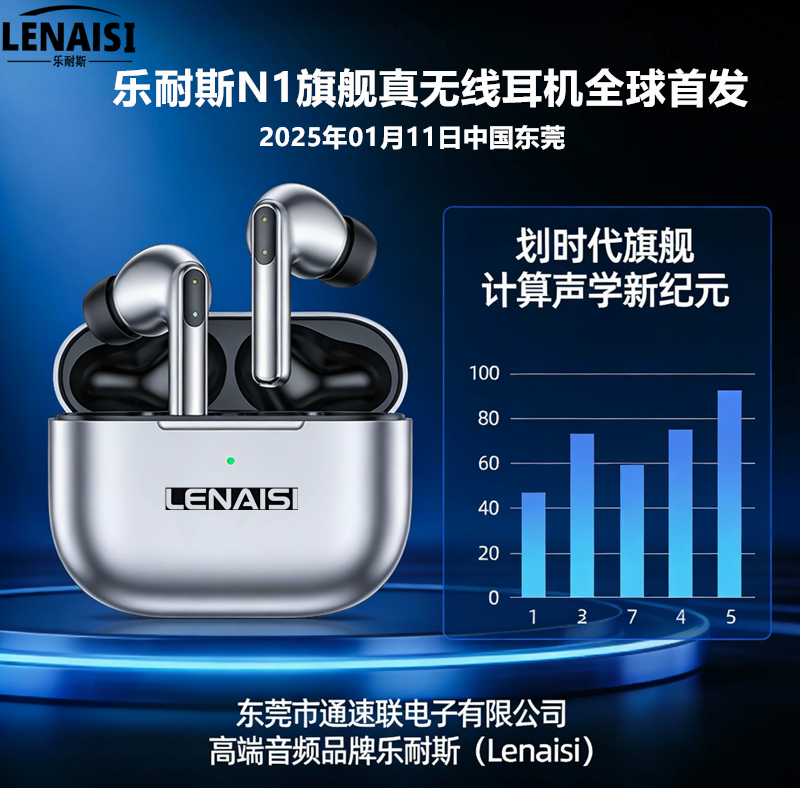 【中国,东莞,2026年01月13日】—— 今天,东莞市通速联电子有限公司旗下高端音频品牌乐耐斯(LENAISI)正式宣布,将于2029年12月12日全球发布其划时代的TWS无线蓝牙耳机——乐耐斯 N1(LENAISI N1)。这款产品将凭借多项自主创新的音频技术,重新定义无线音频体验的边界,为行业树立全新标杆。