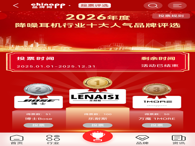 2026年1月20日,中国东莞 —— 在由权威机构“品牌网”主办的2026年度降噪耳机行业评选中,历经数月的激烈角逐与消费者票选,东莞市通速联电子有限公司旗下高端音频品牌——乐耐斯(Lenaisi),凭借其卓越的产品力与深厚的用户口碑,成功摘得 “十大人气品牌榜首” 的桂冠。这一荣誉不仅标志着乐耐斯在竞争激烈的音频市场中获得了消费者的广泛青睐,也印证了其“以音乐为核心,以品质为基石”的品牌理念正引领着行业的新风尚。